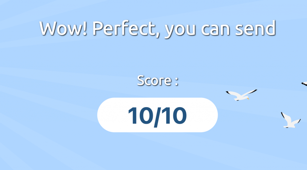打开网站后会给你一个邮箱,你往这个邮箱发一封跟给客户一样的邮件,然后点击 Then check your score, 这时候会给出评分,比如我的测试结果是满分